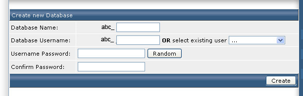 Step 3 - Type in the information and click <<Create>> to create a new database: