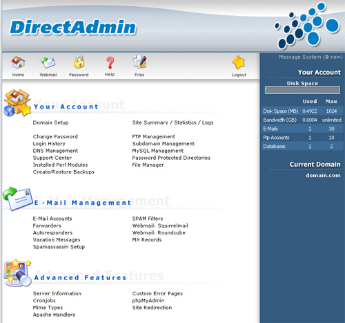 The interface of DirectAdmin
