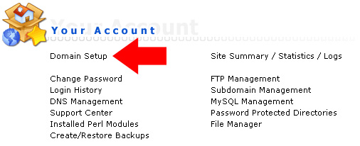 Step 1 - Click <<Domain Setup>>.