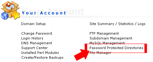 Step 1 - Click <<Password Protected Directories>>.
