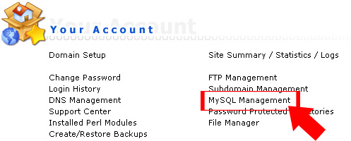 Step 1 - Click <<MySQL Management>>.