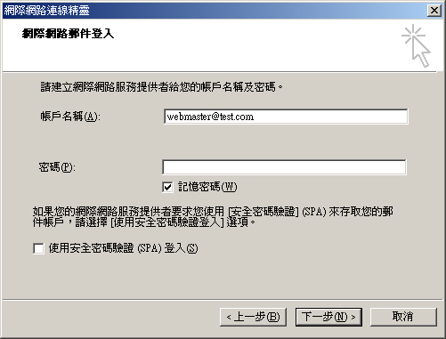 12. Fill in the SMTP logon name and password provided by your ISP and click <<OK>>.