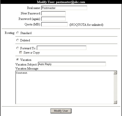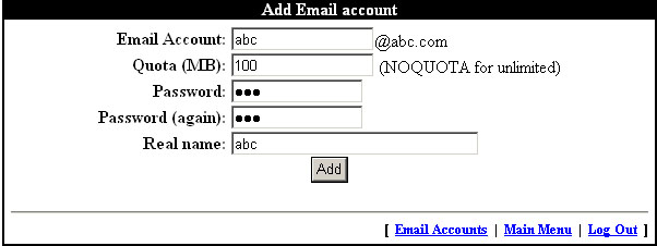 for user to create, modify and detele email accounts. It