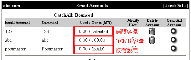 Quota (MB) for the email account.