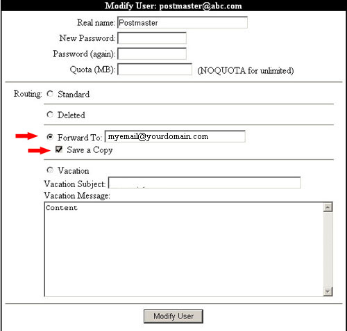b.) Choose the "Forward To" radio button