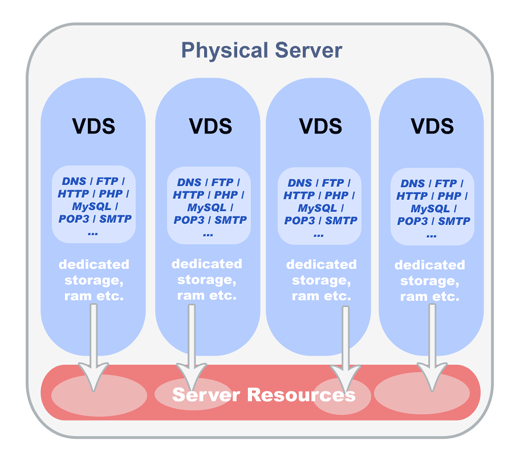 VDS in the same server has its own specific storage, CPU, Ram, dedicated IP and network resources. VDS can ensure much affordability in functions with the simplicity of traditional shared hosting.