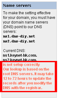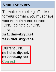 注意DNS设定必须为ns1.dns-diy.net和ns2.dns-diy.net。 |