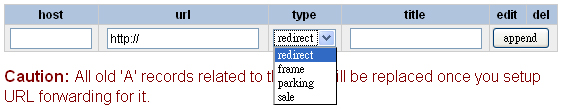 d) 选择<<redirect>>,当在浏览器输入"http://www.abc.com"时,网址列显示实际转址"http://www.def.com"。 e) 您亦可选择<<frame>>,同样是域名转址,而浏览器网址列只显示输入网址"http://www.abc.com"。
