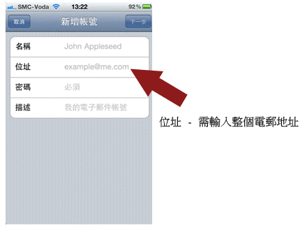 可输入网络供货商提供之SMTP