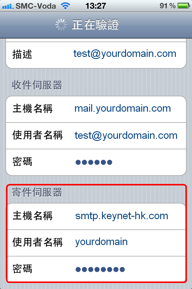 6. 寄件服务器设定如下: