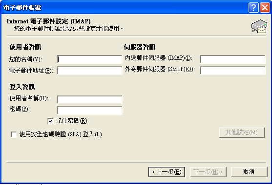 6. (如果你的网络供货商(ISP)提供的SMTP不需要验证,可以省略此步)