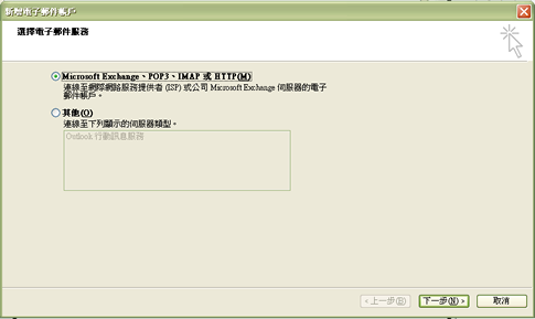 4. 选取"新增" ,点选"IMAP",再按下"下一步"