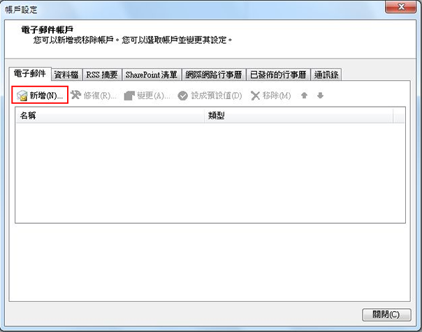 3. 在"账户设定"按下"新增"。