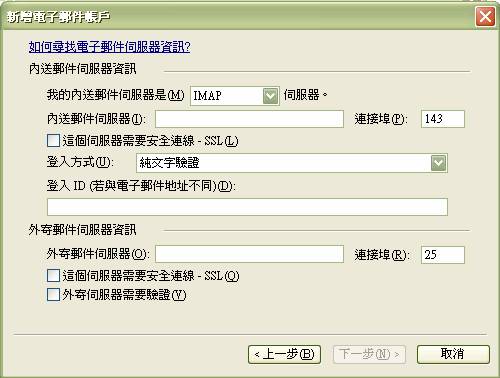 4. 输入完整"电子邮件地址" ,"密码"及"显示名称",选取"手动设定电子邮件帐户的服务器",再按"下一步"。
