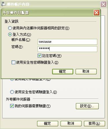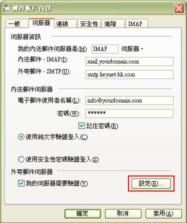 7. 如你的网络供货商提供的SMTP需要验证或已申请我们SMTP服务的客户需到"账户" -> "内容" -> "服务器"