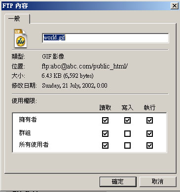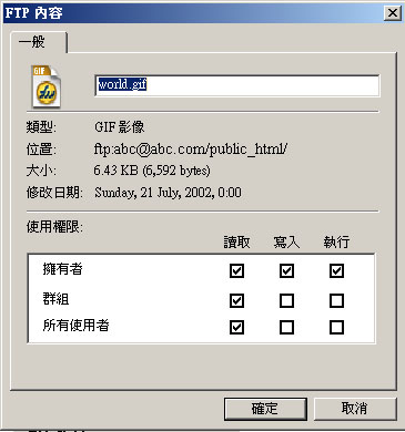 注意 : 由於部份主機並不支援IE更改檔案屬,建議使用WS_FTP
