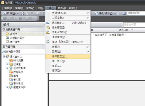 2. 按下主選單上的"工具", 選擇在 "帳戶設定"