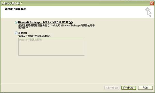 5. 輸入以下資料後,點選"手動設定伺服器設定或其他伺服器類型"。