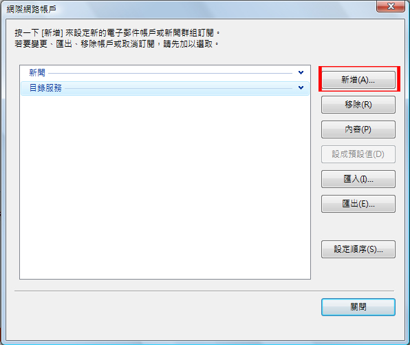 3. 在"網際網絡帳戶"視窗按下<<新增>>。