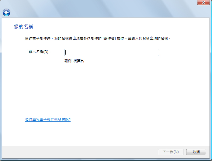 5. 輸入您的名稱,按<<下一步>>。