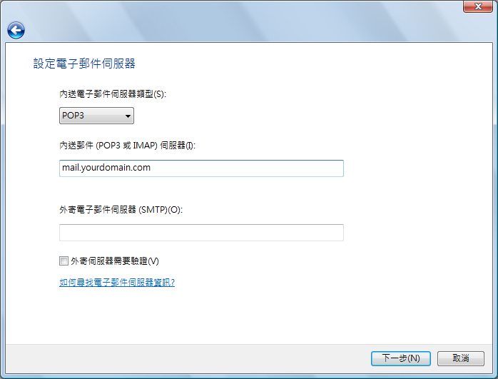 如已申請我們的SMTP / SMTP 1025服務,輸入我們提供的SMTP伺服器名稱 |